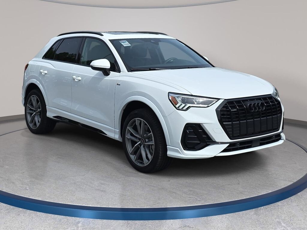 Arkona White 2025 Audi Q3 Premium S Line quattro 8-Speed Automatic with Tiptronic 2.0L 4-Cylinder TFSI quattro CARFAX One-Owner. Clean CARFAX. Alarm with Motion Sensor, Audi Advanced Key, Auto-Dimming Power-Folding Exterior Mirrors, Auto-Dimming Rear-View Mirror, Black Exterior Trim, Black Optic Sport Package, Black Roof Rails, Convenience Package, Driver Seat Memory, Garage Door Opener (HomeLink), LED Interior Lighting Package, SiriusXM with 360L (3 Months Trial), Sport Front Bucket Seats, Wheels: 19" 5-Double-Arm Design, Wireless Phone Charging Pad.