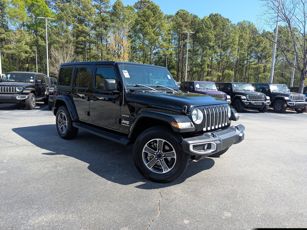 Black Clearcoat 2023 Jeep Wrangler Sahara 4WD 8-Speed Automatic 3.6L V6 24V VVT 240 Amp Alternator, 7 & 4 Pin Wiring Harness, 700 Amp Maintenance Free Battery, Apple CarPlay/Android Auto, Automatic temperature control, Auxiliary Switches, Class II Receiver Hitch, Cold Weather Group, Fully automatic headlights, Heated Front Seats, Heated Steering Wheel, Heavy Duty Suspension w/Gas Shocks, Outside temperature display, ParkView Rear Back-Up Camera, Quick Order Package 25G Sahara, Radio: Uconnect 4C Nav w/8.4" Display, Remote keyless entry, Remote Start System, Side Steps, Trailer Tow & Aux Switch Group, Wheels: 18" x 7.5" Machined w/Gray Spokes.