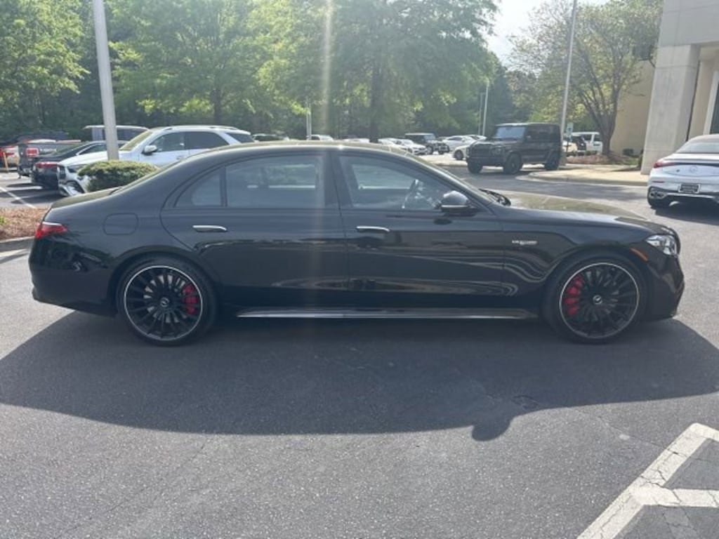 Certified. Black 2026 Mercedes-Benz S-Class S 63 E AMG® 4MATIC® 4.0L V8 Carbon Fiber Trim, 4.0L V8, 4MATIC®, Black w/Exclusive Nappa Leather Upholstery, Adaptive Rear Compartment Lighting, AMG® Exclusive Nappa Leather Upholstery, Burmester® High-End 4D Surround Sound System, Calf Massage Function, Chauffeur Function, EASY-ADJUST Luxury Front Headrests, Executive Rear Seats, Four-Zone Climate Control, Front Passenger Seat Electrically Adjustable From Rear, Illuminated Seatbelt Buckles, MBUX Rear Gesture Control, MBUX Rear Tablet, Pinnacle Trim, Rain sensing wipers, Rear Energizing Package, Rear Multicontour Seats with Massage, Rear Neck and Shoulder Heating, Rear Seat Belt Airbags, Rear Seat Comfort Package, Rear Seat Frontal Airbags, Rear Seatbelt Presenters, Speed-Sensitive Wipers, Top Speed Increase, Variably intermittent wipers, Wheels: Black 21" AMG® Forged Multi-Spoke.