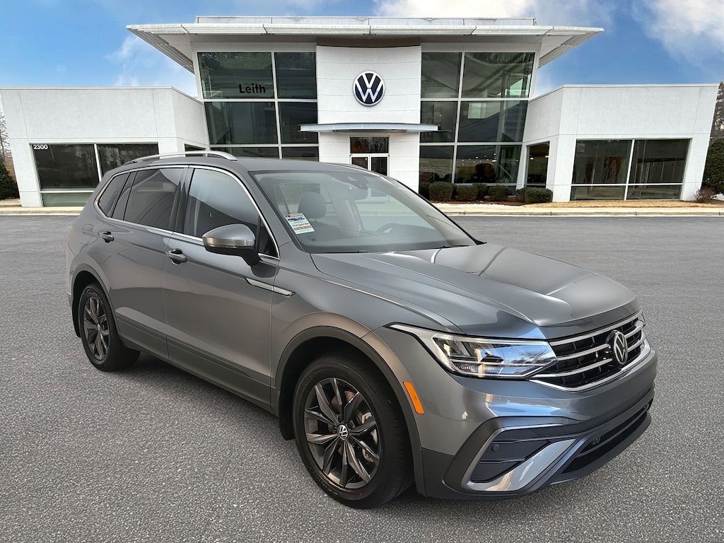 New Price! Certified. Platinum Gray Metallic 2023 Volkswagen Tiguan 2.0T SE AWD 8-Speed Automatic with Tiptronic 2.0L TSI DOHC AWD, Exterior Parking Camera Rear, Fully automatic headlights, Heated door mirrors, Heated Front Comfort Seats, Illuminated entry, Perforated V-Tex Leatherette Seating Surfaces, Power Liftgate, Radio: MIB3 Composition Media AM/FM/HD, Rain sensing wipers, Wheels: 18" Dark Graphite Painted 10-Spoke Alloy.