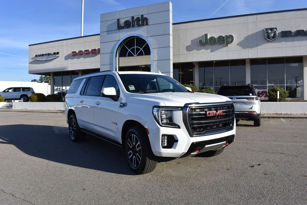 Clean CARFAX. Summit White 2021 GMC Yukon XL AT4 4WD 10-Speed Automatic with Overdrive EcoTec3 5.3L V8 12-Way Power Seat Adjusters, 15" Diagonal Multi-Color Head-Up Display, 2 Presets For Outside Rearview Mirrors, 3.23 Rear Axle Ratio, 3rd Row 60/40 Power-Folding Split-Bench Seat, 3rd row seats: split-bench, 4-Wheel Disc Brakes, 9 Speakers, ABS brakes, Adaptive suspension, Air Conditioning, Alloy wheels, AM/FM radio: SiriusXM with 360L, Apple CarPlay/Android Auto, AT4 Premium Package, Auto High-beam Headlights, Auto-dimming door mirrors, Auto-dimming Rear-View mirror, Auto-leveling suspension, Automatic Emergency Braking, Automatic temperature control, Black Roof-Mounted Luggage Rack Side Rails, Bose 9-Speaker Stereo Audio System Feature, Brake assist, Bright Front & Rear Door Sill Plates, Bumpers: body-color, Compass, Delay-off headlights, Dual front impact airbags, Dual front side impact airbags, Dual-Pane Panoramic Power Sunroof, Electronic Stability Control, Emergency communication system: OnStar and GMC connected services capable, Following Distance Indicator, Forward Collision Alert, Four wheel independent suspension, Front anti-roll bar, Front dual zone A/C, Front fog lights, Front High-Approach Angle Fascia, Front Pedestrian Braking, Fully automatic headlights, Garage door transmitter, Hands-Free Power Programmable Rear Liftgate, HD Radio, HD Surround Vision, Heated & Ventilated Driver & Front Passenger Seats, Heated 2nd Row Outboard Position Seats, Heated Automatic Steering Wheel, Heated door mirrors, Heated Driver & Front Passenger Seats, Heated front seats, Heated rear seats, Heated steering wheel, Heavy-Duty Air Filter, Hill Descent Control, Illuminated entry, Inside Rear-View Auto-Dimming Mirror, IntelliBeam Automatic High Beam On/Off, Lane Change Alert w/Side Blind Zone Alert, Lane Keep Assist w/Lane Departure Warning, Leather steering wheel, Low tire pressure warning, Magnetic Ride Control Suspension, Memory seat, Navigation System, Occupant sensing airbag, Outside Heated Power-Adjustable Mirrors, Outside temperature display, Overhead airbag, Panic alarm, Perforated Leather Seating Surfaces, Power door mirrors, Power driver seat, Power Liftgate, Power passenger seat, Power Release 2nd Row 60/40 Split-Folding Bench Seat, Power Release 2nd Row Bucket Seats, Power steering, Power Tilt & Telescopic Steering Column, Power windows, Power-Retractable Assist Steps, Preferred Equipment Group 4SB, Radio: AM/FM/SiriusXM, Radio: AM/FM/SiriusXM w/Navigation, Rain sensing wipers, Rear air conditioning, Rear anti-roll bar, Rear Cross Traffic Alert, Rear Media & Nav Package, Rear Pedestrian Alert, Rear reading lights, Rear Seat Media System, Rear window defroster, Rear window wiper, Red Horizontal-Mounted Recovery Hooks, Remote keyless entry, Roof rack: rails only, Safety Alert Seat, Security system, SiriusXM w/360L, Speed control, Speed-sensing steering, Split folding rear seat, Spoiler, Steering wheel memory, Steering wheel mounted audio controls, Tachometer, Technology Package, Telescoping steering wheel, Tilt steering wheel, Traction control, Trip computer, Turn signal indicator mirrors, Universal Home Remote, Variably intermittent wipers, Ventilated front seats, Voltmeter, Wheels: 20" x 9" 6-Spoke Machined Aluminum.