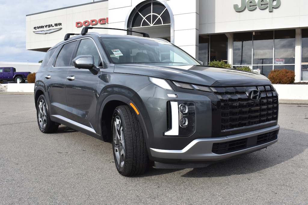 CARFAX One-Owner. Steel Graphite 2023 Hyundai Palisade Limited AWD 8-Speed Automatic with SHIFTRONIC V6 12 Speakers, 3.648 Axle Ratio, 3rd row seats: split-bench, 4-Wheel Disc Brakes, ABS brakes, Air Conditioning, Alloy wheels, AM/FM radio: SiriusXM, Apple CarPlay & Android Auto, Auto High-beam Headlights, Auto-dimming door mirrors, Auto-dimming Rear-View mirror, Auto-leveling suspension, Automatic temperature control, Brake assist, Bumpers: body-color, Carpeted Floor Mats, Compass, Delay-off headlights, Dual front impact airbags, Dual front side impact airbags, Electronic Stability Control, Emergency communication system: Blue Link Connected Car Service (3-year complimentary subscription), Exterior Parking Camera Rear, Four wheel independent suspension, Front anti-roll bar, Front dual zone A/C, Fully automatic headlights, Garage door transmitter: HomeLink, harman/kardon® Speakers, Heads-Up Display, Heated & Ventilated Front Bucket Seats, Heated door mirrors, Heated front seats, Heated rear seats, Heated steering wheel, Illuminated entry, Knee airbag, Leather Seat Trim, Low tire pressure warning, Memory seat, Navigation System, Occupant sensing airbag, Option Group 01, Outside temperature display, Overhead airbag, Panic alarm, Power door mirrors, Power driver seat, Power Liftgate, Power moonroof, Power passenger seat, Power steering, Power windows, Radio data system, Radio: AM/FM/MP3 Premium Audio System, Rain sensing wipers, Rear air conditioning, Rear anti-roll bar, Rear audio controls, Rear side impact airbag, Rear window defroster, Rear window wiper, Reclining 3rd row seat, Remote keyless entry, Security system, Speed control, Speed-sensing steering, Split folding rear seat, Spoiler, Steering wheel mounted audio controls, Tachometer, Telescoping steering wheel, Tilt steering wheel, Traction control, Trip computer, Turn signal indicator mirrors, Variably intermittent wipers, Ventilated front seats, Ventilated rear seats, Wheels: 20" x 7.5J Alloy.