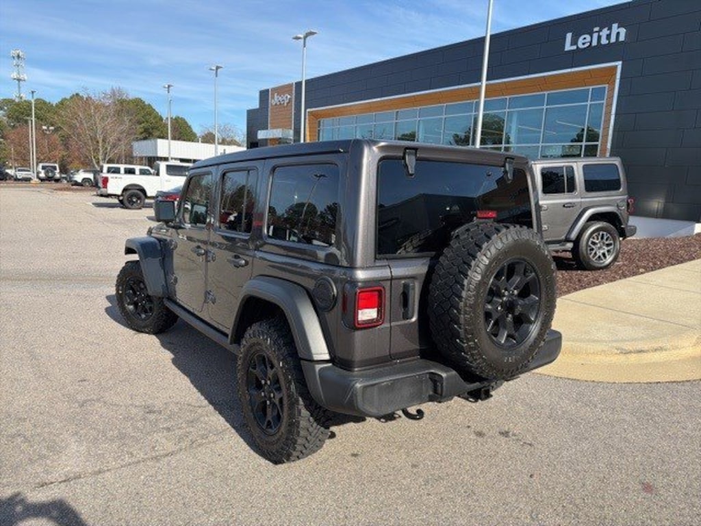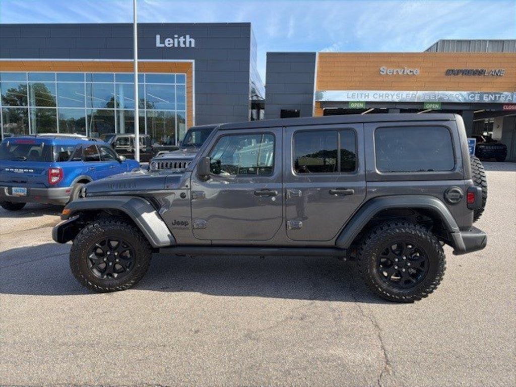 CARFAX One-Owner. Clean CARFAX. Granite Crystal Metallic Clearcoat 2021 Jeep Wrangler Unlimited Willys 4WD 8-Speed Automatic 2.0L I4 DOHC CARFAX CERTIFIED.. NO ACCIDENTS, ONE-OWNER, 4-Wheel Drive Swing Gate Decal, Alpine Premium Audio System, Anti-Spin Differential Rear Axle, Auto-Dimming Rear-View Mirror, Automatic Headlamps, Black Grille, Black Trail Rated Badge, Deep Tint Sunscreen Windows, Emergency/Assistance Call, Front 1-Touch Down Power Windows, Leather Wrapped Steering Wheel, Matte Black Jeep Badge, Mold In Color Bumper w/Gloss Black, MOPAR All-Weather Floor Mats, ParkView Rear Back-Up Camera, Power Heated Mirrors, Quick Order Package 22W Willys, Remote Keyless Entry, Security Alarm, Speed Sensitive Power Locks, Sun Visors w/Illuminated Vanity Mirrors, Wheels: 17" x 7.5" Moab Black Aluminum, Willys, Willys Hood Decal, Wrangler Decal.