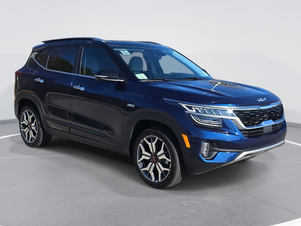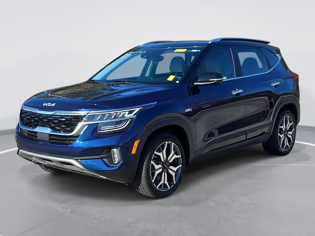 Clean CARFAX. CARFAX One-Owner. Dark Ocean Blue/Black Roof 2023 Kia Seltos SX AWD 7-Speed Automatic I4 LOCAL TRADE, LOW MILEAGE, ONE-OWNER.