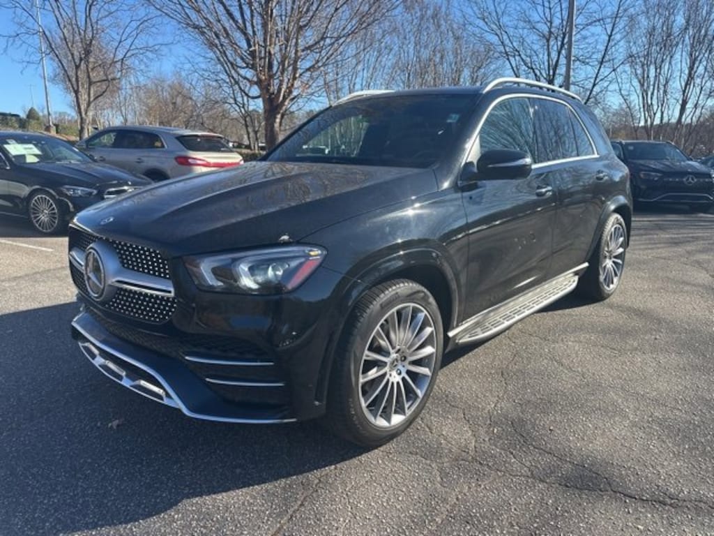 Black 2022 Mercedes-Benz GLE GLE 350 2.0L I4 Turbocharged 115V Power Outlet, 3.69 Axle Ratio, 4-Wheel Disc Brakes, 8 Speakers, ABS brakes, Air Conditioning, Alloy wheels, AM/FM radio: SiriusXM, AMG® Bodystyling, AMG® Line Exterior, Anti-whiplash front head restraints, Apple CarPlay®/Android Auto®, Auto High-beam Headlights, Auto tilt-away steering wheel, Auto-dimming door mirrors, Auto-dimming Rear-View mirror, Automatic temperature control, Black Headliner, Brake assist, Bumpers: body-color, Burmester® Surround Sound System, Compass, Delay-off headlights, Driver door bin, Driver vanity mirror, Dual front impact airbags, Dual front side impact airbags, Electronic Stability Control, Emergency communication system: eCall Emergency System, Exterior Parking Camera Rear, Four wheel independent suspension, Front anti-roll bar, Front Bucket Seats, Front Center Armrest, Front dual zone A/C, Front reading lights, Fully automatic headlights, Garage door transmitter: HomeLink, Genuine wood console insert, Genuine wood dashboard insert, Genuine wood door panel insert, Heated door mirrors, Heated front seats, Heated Power Front Seats w/Driver Memory, Illuminated entry, Knee airbag, Leather steering wheel, Load Sill Protection, Low tire pressure warning, MB-Tex Upholstery, Memory seat, Navigation system: MBUX, Occupant sensing airbag, Outside temperature display, Overhead airbag, Panic alarm, Panorama Power Tilt/Sliding Sunroof, Parking Assist Code, Passenger door bin, Passenger vanity mirror, Power adjustable front head restraints, Power door mirrors, Power driver seat, Power Liftgate, Power passenger seat, Power steering, Power windows, Premium audio system: MBUX, Premium Package, Radio data system, Radio: 12.3" Media Display w/Touchscreen, Rain sensing wipers, Rear anti-roll bar, Rear fog lights, Rear reading lights, Rear seat center armrest, Rear window defroster, Rear window wiper, Remote keyless entry, Roof rack: rails only, Security system, Speed-sensing steering, Speed-Sensitive Wipers, Split folding rear seat, Spoiler, Steering wheel memory, Steering wheel mounted audio controls, Tachometer, Telescoping steering wheel, Tilt steering wheel, Traction control, Trip computer, Turn signal indicator mirrors, Weather band radio, Wheels: 21" AMG® Multispoke.