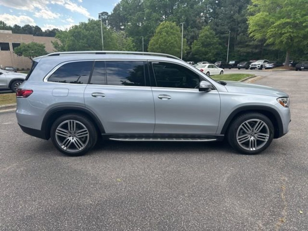Certified. Cirrus Silver Metallic 2022 Mercedes-Benz GLS GLS 450 4MATIC® I6 13 Speakers, 3rd row seats: split-bench, 4-Wheel Disc Brakes, 5-Zone Climate Control, 7-Seat Configuration, ABS brakes, Acoustic Comfort Package, Active Blind Spot Assist, Active Brake Assist w/Cross-Traffic Function, Active Distance Assist DISTRONIC®, Active Emergency Stop Assist, Active Lane Change Assist, Active Lane Keeping Assist, Active Speed Limit Assist, Active Steering Assist, Active Stop & Go Assist, Adaptive suspension, Air Conditioning, AM/FM radio: SiriusXM, Apple CarPlay®/Android Auto®, Auto tilt-away steering wheel, Auto-dimming door mirrors, Auto-dimming Rear-View mirror, Auto-leveling suspension, Automatic temperature control, Bumpers: body-color, Child-Seat-Sensing Airbag, Compass, Driver Assistance Package Plus, Driver door bin, Driver vanity mirror, Dual front impact airbags, Dual front side impact airbags, Emergency communication system: eCall Emergency System, Evasive Steering Assist, Four wheel independent suspension, Front anti-roll bar, Front Bucket Seats, Front dual zone A/C, Front reading lights, Garage door transmitter: HomeLink, Genuine wood console insert, Genuine wood dashboard insert, Genuine wood door panel insert, Head restraints memory, Heated and Ventilated Power Front Seats w/Memory, Heated door mirrors, Heated front seats, Illuminated entry, Knee airbag, Low tire pressure warning, MB-Tex Upholstery, Memory seat, Navigation system: MB Navigation, Occupant sensing airbag, Outside temperature display, Overhead airbag, Overhead console, Panorama Sliding Sunroof, Passenger vanity mirror, Power adjustable front head restraints, Power door mirrors, Power driver seat, Power passenger seat, Power steering, Power windows, PRE-SAFE® PLUS Rear-End Collision Protection, Premium audio system: MBUX, Radio: MBUX Multimedia System, Rear air conditioning, Rear anti-roll bar, Rear dual zone A/C, Rear reading lights, Rear seat center armrest, Rear window defroster, Remote keyless entry, Roof rack: rails only, Route-Based Speed Adaptation, Speed-sensing steering, Split folding rear seat, Spoiler, Steering wheel memory, Steering wheel mounted audio controls, Tachometer, Telescoping steering wheel, Tilt steering wheel, Traction control, Traffic Sign Assist, Trip computer, Turn signal indicator mirrors, Ventilated front seats, Weather band radio, Wheels: 21" Triple 5-Spoke.