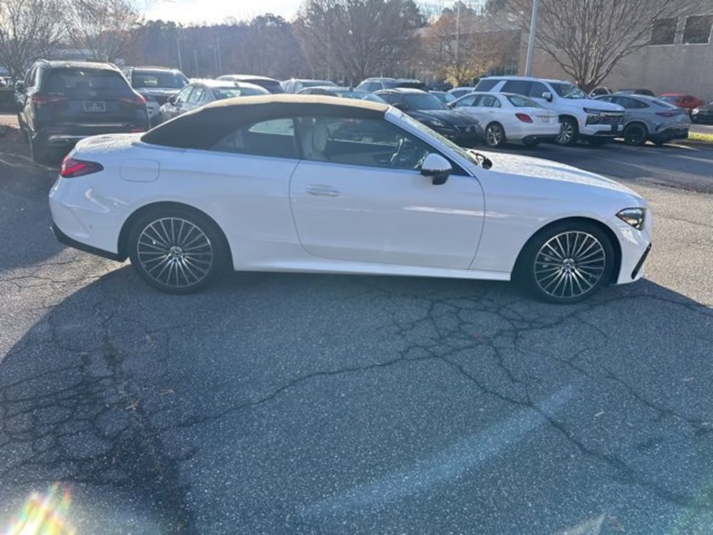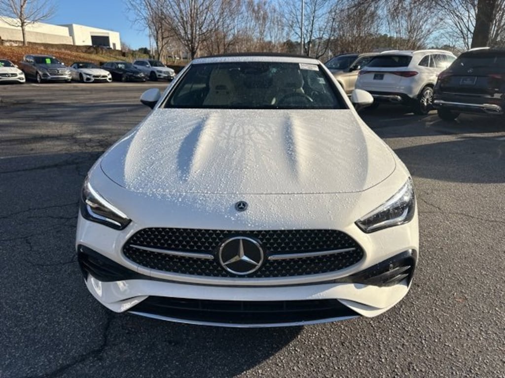 White 2024 Mercedes-Benz CLE CLE 450 4MATIC® I6 I6, 15 Speakers, 4-Wheel Disc Brakes, ABS brakes, Air Conditioning, Alloy wheels, AM/FM radio: SiriusXM w/360L, Apple CarPlay®/Android Auto®, Auto High-beam Headlights, Auto tilt-away steering wheel, Auto-dimming door mirrors, Auto-dimming Rear-View mirror, Automatic temperature control, Brake assist, Bumpers: body-color, Child-Seat-Sensing Airbag, Compass, Convertible roof lining, Convertible roof wind blocker, Driver door bin, Driver vanity mirror, Dual front impact airbags, Dual front side impact airbags, Electronic Stability Control, Emergency communication system: Mercedes-Benz Emergency Call Service, Exterior Parking Camera Rear, Four wheel independent suspension, Front anti-roll bar, Front Bucket Seats, Front Center Armrest, Front dual zone A/C, Front reading lights, Front Sport Seats w/Memory, Fully automatic headlights, Garage door transmitter: HomeLink, Glass rear window, Head restraints memory, Heated door mirrors, Heated Front Seats, Heated front seats, Heated Steering Wheel, Illuminated entry, Integrated roll-over protection, Knee airbag, Leather steering wheel, Low tire pressure warning, MB-Tex Seat Trim, Memory seat, Navigation system: MBUX, Occupant sensing airbag, Outside temperature display, Overhead airbag, Overhead console, Panic alarm, Passenger door bin, Passenger vanity mirror, Power adjustable front head restraints, Power convertible roof, Power door mirrors, Power driver seat, Power passenger seat, Power steering, Power windows, Radio data system, Radio: 3rd Generation MBUX Multimedia System, Rain sensing wipers, Rear anti-roll bar, Rear fog lights, Rear window defroster, Remote keyless entry, Security system, SiriusXM Satellite Radio, Speed control, Speed-sensing steering, Split folding rear seat, Sport steering wheel, Steering wheel memory, Steering wheel mounted audio controls, Tachometer, Telescoping steering wheel, Tilt steering wheel, Traction control, Trip computer, Turn signal indicator mirrors, Ventilated Front Seats, Wheels: 19" AMG® Multispoke w/Black Accents.