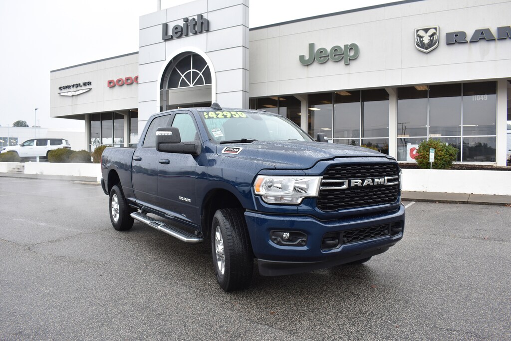 Clean CARFAX. CARFAX One-Owner. Patriot Blue Pearlcoat 2024 Ram 2500 Big Horn 4WD 8-Speed Automatic 6.4L V8 12" Touchscreen Display, 2 Way Rear Headrest Seat, 2nd Row In Floor Storage Bins, 3.73 Axle Ratio, 4 Way Front Headrests, 4-Wheel Disc Brakes, 40/20/40 Split Bench Seat, 4G LTE Wi-Fi Hot Spot, 6 Speakers, 8.4" Touchscreen Display, 9 Alpine Speakers w/Subwoofer, ABS brakes, Active Noise Control System, Air Conditioning, Air Conditioning ATC w/Dual Zone Control, Alexa Built-In, All R1 High Radios, All Radio Equipped Vehicles, Anti-Spin Differential Rear Axle, Apple CarPlay, Auto Power-Folding Mirrors, Bed Utility Group, Big Horn IP Badge, Black Exterior Mirrors, Black Interior Accents, Bluetooth Handsfree Phone & Audio, Body Color Door Handles, Body Color Grille Surround, Brake assist, Bumpers: chrome, Center Hub, Center Stack Storage Drawer, Chrome Flat Cab-Length Side Steps, Cloth 40/20/40 Bench Seat, Compass, Connected Travel & Traffic Services, Connectivity - US/Canada, Delay-off headlights, Disassociated Touchscreen Display, Dual front impact airbags, Dual front side impact airbags, Dual Glove Boxes, Electronic Stability Control, Electronically Controlled Throttle, Emergency communication system: SiriusXM Guardian, Exterior Mirrors Courtesy Lamps, Exterior Mirrors w/Heating Element, Exterior Mirrors w/Supplemental Signals, Foam Bottle Insert (Door Trim Panel), Footwell Courtesy Lamp, For Details, Visit DriveUconnect.com, For More Info, Call 800-643-2112, Forward & Reverse Utility Lights, Front anti-roll bar, Front Armrest w/Cupholders, Front Center Seat Cushion Storage, Front Fog Lamps, Front Seat Back Map Pockets, Fully automatic headlights, Global Telematics Box Module (TBM), Glove Box Lamp, Google Android Auto, GPS Antenna Input, GPS Navigation, HD Radio, Heated door mirrors, Integrated Center Stack Radio, Integrated Voice Command w/Bluetooth, Leather Wrapped Steering Wheel, LED Bed Lighting, Level 1 Equipment Group, Locking Lower Glove Box, Low tire pressure warning, Manual Adjust 4-Way Driver Seat, Manual Adjust 4-Way Front Passenger Seat, Manufacturer's Statement of Origin, Mirror Running Lights, MOPAR Deployable Bed Step, MOPAR Spray In Bedliner, Occupant sensing airbag, Off-Road Information Pages, Overhead airbag, Painted Front Bumper, Painted Rear Bumper, Panic alarm, ParkSense Front/Rear Park Assist System, ParkView Rear Back-Up Camera, Power 2-Way Driver Lumbar Adjust, Power Adjust 8-Way Driver Seat, Power Adjust Mirrors, Power Adjustable Convex Aux Mirrors, Power door mirrors, Power Heated Fold Telescope Mirrors, Power steering, Power Telescoping Mirrors, Power windows, Premium Cloth 40/20/40 Bench Seat, Premium Cloth 40/20/40 Bench Seat (DISC), Protection Group, Quick Order Package 2GZ Big Horn, Radio data system, Radio: Uconnect 5 Nav w/12.0" Display, Radio: Uconnect 5 W w/8.4" Display (A62), Rear 60/40 Folding Seat, Rear anti-roll bar, Rear Dome w/On/Off Switch Lamp, Rear Folding Seat, Rear step bumper, Remote keyless entry, Remote USB Port - Charge Only, Selectable Tire Fill Alert, SiriusXM Radio Service, SiriusXM Satellite Radio, SiriusXM w/360L, Speed control, Sport Appearance Package, Sport Decal, Steering Wheel Mounted Audio Controls, Storage Tray, Tachometer, Tilt steering wheel, Tip Start, Tow Hooks, Traction control, Trailer Tow Pages, Trip computer, Turn signal indicator mirrors, Variably intermittent wipers, Voltmeter, Wheels: 18" x 8.0" Polished Aluminum.