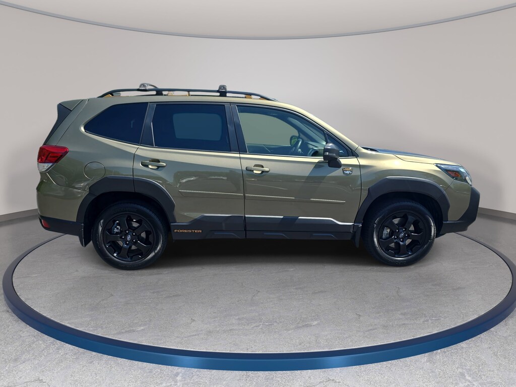 CARFAX One-Owner. Autumn Green Metallic 2023 Subaru Forester Wilderness AWD Lineartronic CVT 2.5L 4-Cylinder DOHC 16V LOCAL TRADE IN, BACK OF CAMERA, LEATHER, HEATED SEATS, PANORAMIC SUNROOF, ALL WHEEL DRIVE, APPLE CARPLAY & ANDROID AUTO, MUST SEE TO APPRECIATE!, ABS brakes, Air Conditioning, Anti-whiplash front head restraints, Auto High-beam Headlights, Automatic temperature control, Electronic Stability Control, Exterior Parking Camera Rear, Four wheel independent suspension, Front dual zone A/C, Fully automatic headlights, Heated Front Bucket Seats, Leather Shift Knob, Outside temperature display, Power driver seat, Power moonroof: Panoramic, Power steering, Power windows, Radio: Subaru Starlink 8.0 Multimedia Plus System, Rear seat center armrest, Rear window defroster, Remote keyless entry, STARLINK/Apple CarPlay/Android Auto, Steering wheel mounted audio controls, Telescoping steering wheel, Textured StarTex Upholstery, Traction control, Wheels: 17 x 7.0 J Matte Black Finish Alum-Alloy.