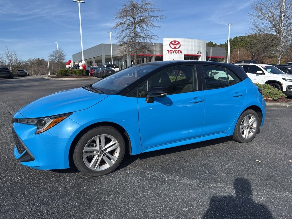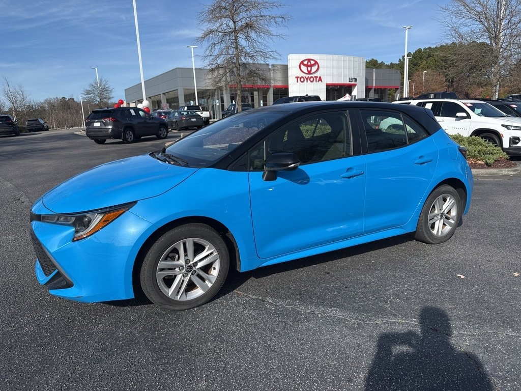 CARFAX One-Owner. Blue Flame w/Midnight Black Roof 2020 Toyota Corolla Hatchback SE FWD 6-Speed Manual 2.0L I4 LOCAL TRADE IN, BACK UP CAMERA, SMART KEY W PUSH BUTTON START, PRE-COLLISION SYSTEM W PEDESTRIAN DETECTION, FULL-SPEED RANGE DYNAMIC RADAR CRUISE CONTROL, LANE DEPARTURE ALERT W STEERING ASSIST, BLIND SPOT MONITOR W REAR CROSS-TRAFFIC ALERT, APPLE CARPLAY & ANDROID AUTO, MUST SEE TO APPRECIATE!, ABS brakes, Active Cruise Control, Air Conditioning, AM/FM radio: SiriusXM, Apple CarPlay/Android Auto, Auto High-beam Headlights, Compass, Delay-off headlights, Electronic Stability Control, Exterior Parking Camera Rear, Fabric Upholstery, Four wheel independent suspension, Front Center Armrest, Heated door mirrors, Illuminated entry, Low tire pressure warning, Outside temperature display, Power steering, Power windows, Rear window defroster, Remote keyless entry, Steering wheel mounted audio controls, Telescoping steering wheel, Traction control, Turn signal indicator mirrors, Wheels: 16 Silver Metallic Painted Aluminum.