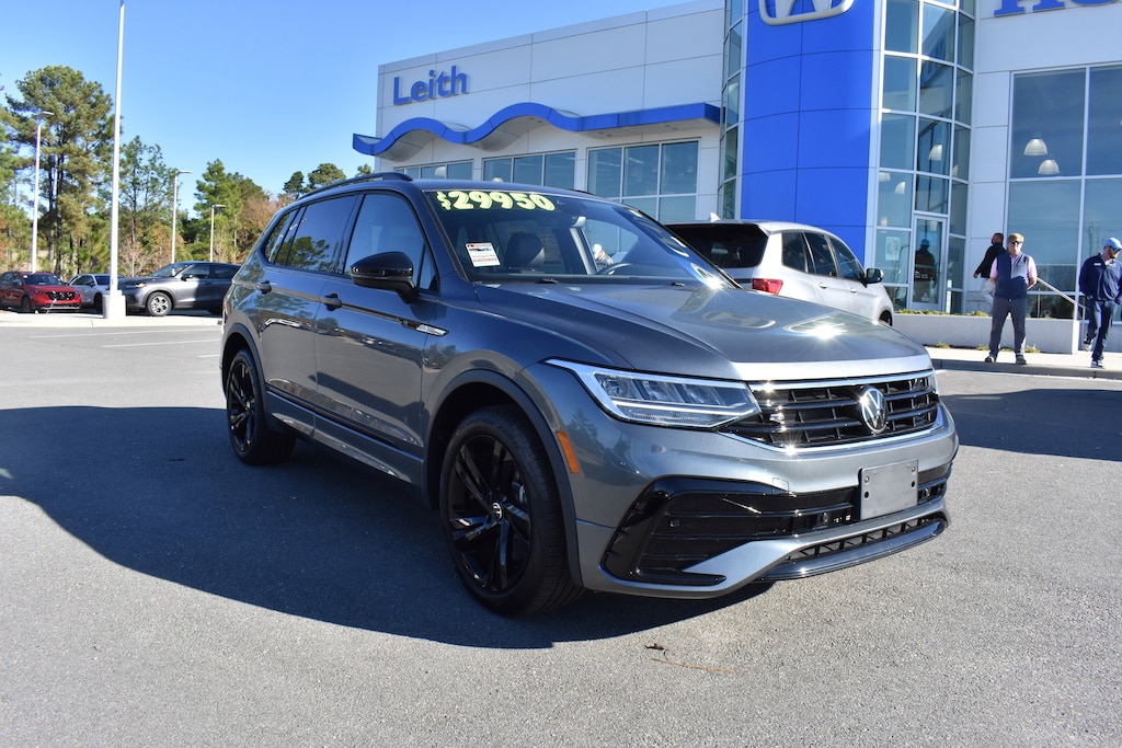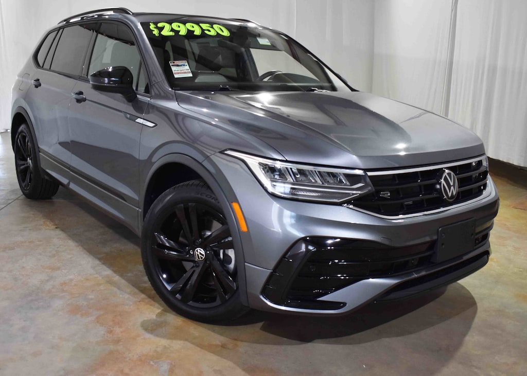 Clean CARFAX. CARFAX One-Owner. Platinum Gray Metallic 2024 Volkswagen Tiguan 2.0T SE R-Line Black FWD 8-Speed Automatic with Tiptronic 2.0L TSI DOHC 3-Row Rubber Monster Mats Kit (Set of 5), 3.33 Axle Ratio, 3rd row seats: bench, 4-Wheel Disc Brakes, 4-Wheel Independent Suspension, 6 Speakers, ABS brakes, Air Conditioning, Alloy wheels, AM/FM radio: SiriusXM with 360L, Auto-dimming Rear-View mirror, Automatic temperature control, Brake assist, Bumpers: body-color, Cargo Area Retractable Privacy Cover, Compass, Delay-off headlights, Dual front impact airbags, Dual front side impact airbags, Electronic Stability Control, Emergency communication system: VW Car-Net Safe & Secure 5-year, Exterior Parking Camera Rear, Four wheel independent suspension, Front anti-roll bar, Front dual zone A/C, Fully automatic headlights, Heated door mirrors, Heated Front Seats, Heated front seats, Heavy Duty Trunk Liner w/VW CarGo Blocks, Illuminated entry, Leather Shift Knob, Leather steering wheel, Low tire pressure warning, Occupant sensing airbag, Outside temperature display, Overhead airbag, Overhead console, Panic alarm, Perforated V-Tex Leatherette Seating Surfaces, Power door mirrors, Power driver seat, Power Liftgate, Power moonroof, Power steering, Power windows, Radio data system, Radio: MIB3 Composition Media AM/FM/HD, Rain sensing wipers, Rear anti-roll bar, Rear window defroster, Rear window wiper, Remote keyless entry, Security system, Speed control, Speed-sensing steering, Split folding rear seat, Spoiler, Sport steering wheel, Steering wheel mounted audio controls, Tachometer, Telescoping steering wheel, Tilt steering wheel, Traction control, Trip computer, Turn signal indicator mirrors, Variably intermittent wipers, VW Care, Wheels: 19" Black Painted Twin 5-Spoke Alloy.